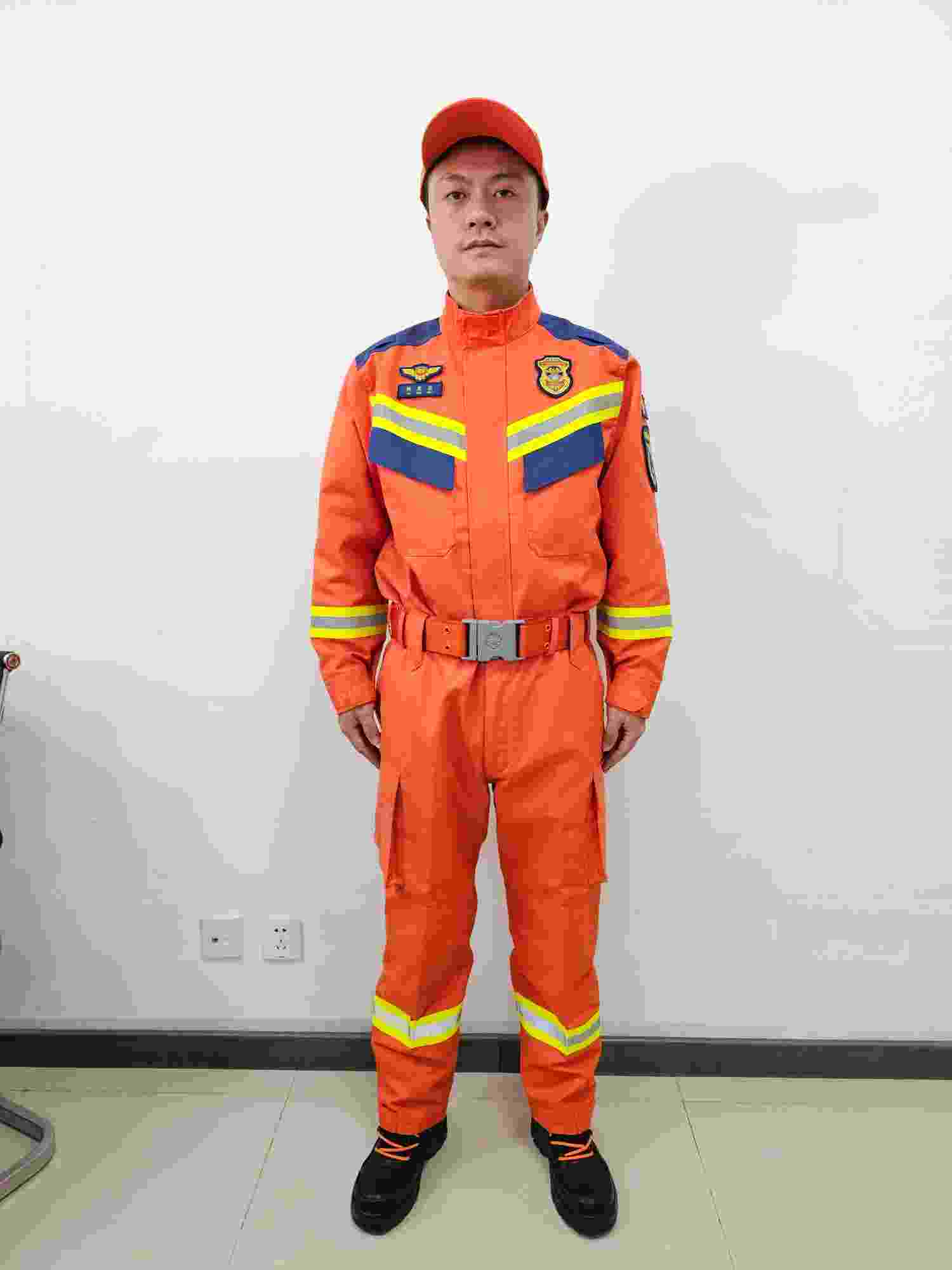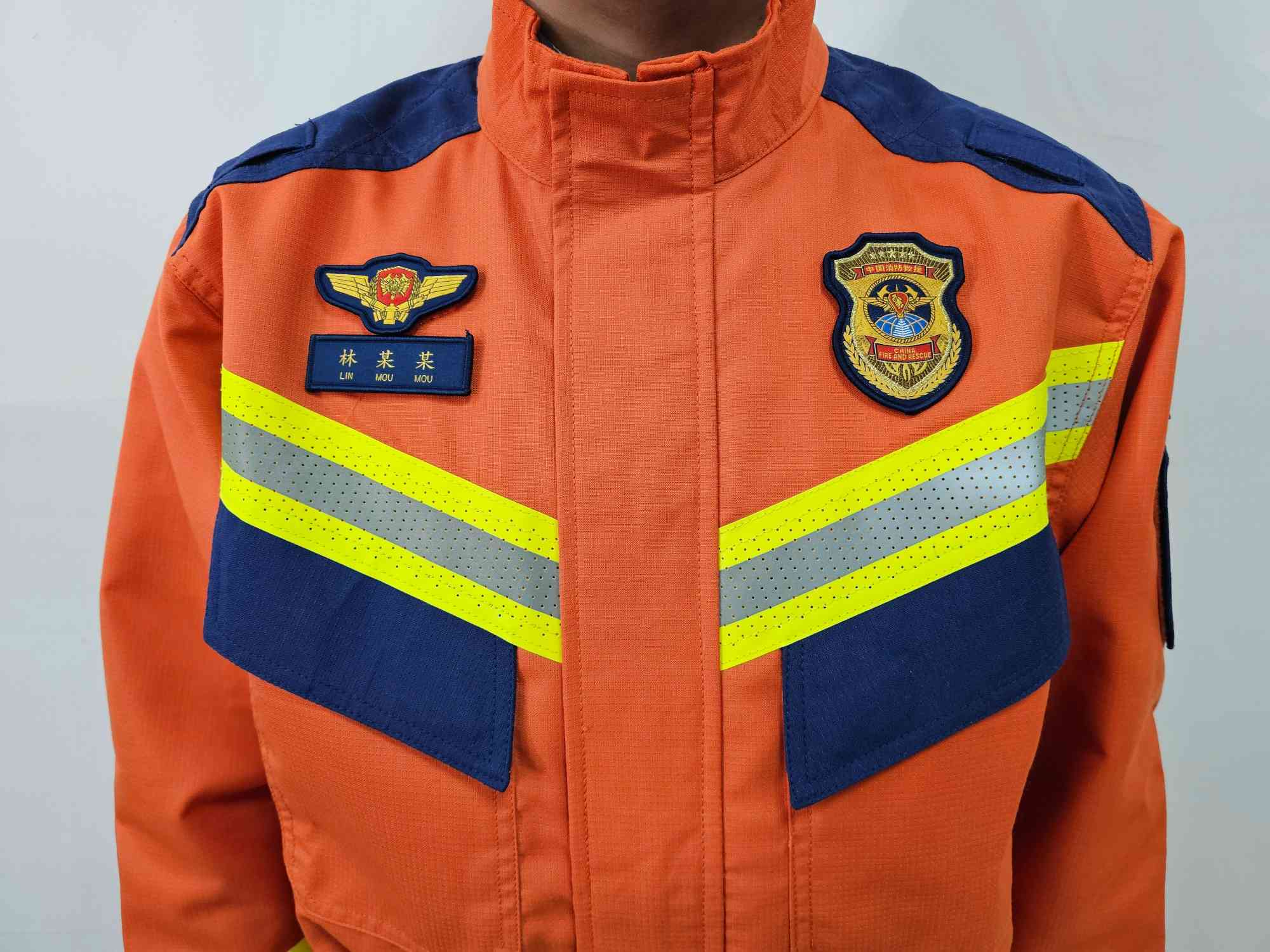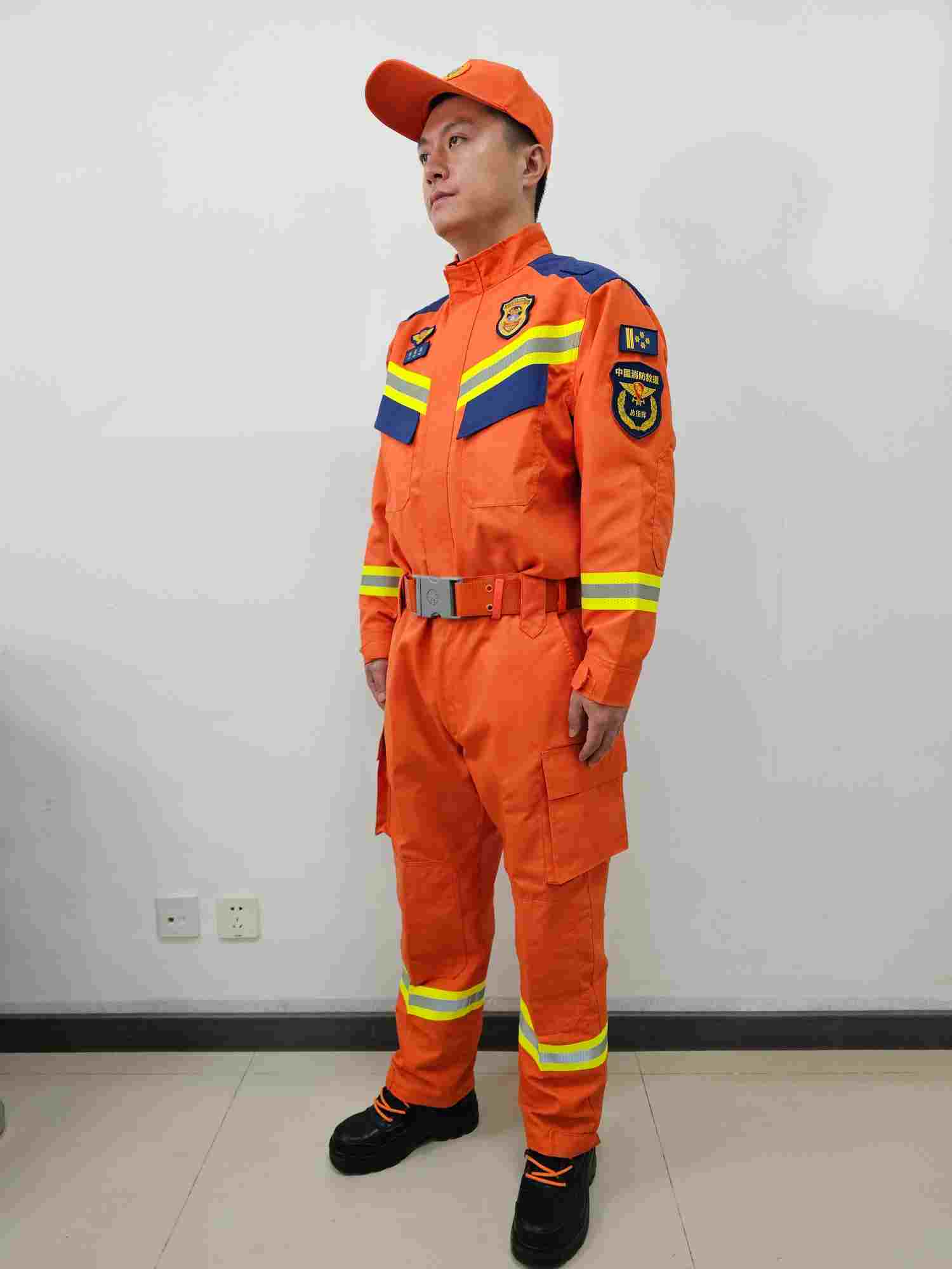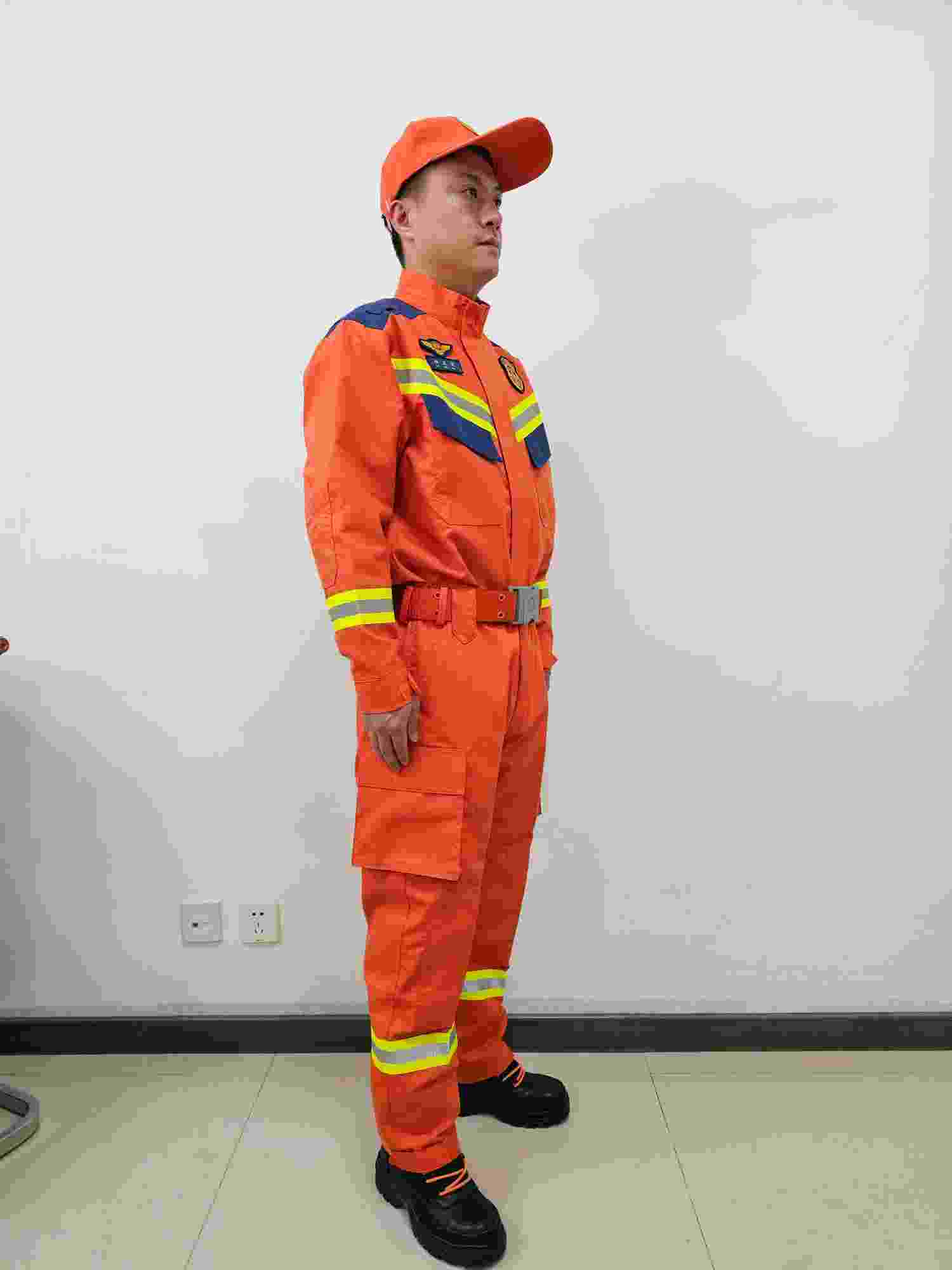本消防員搶險救援服(以下簡稱救援服)符合國家XF633-2006《消防員搶險救援防護服裝》標準要求,外觀符合國家消防救援局最新統型要求。